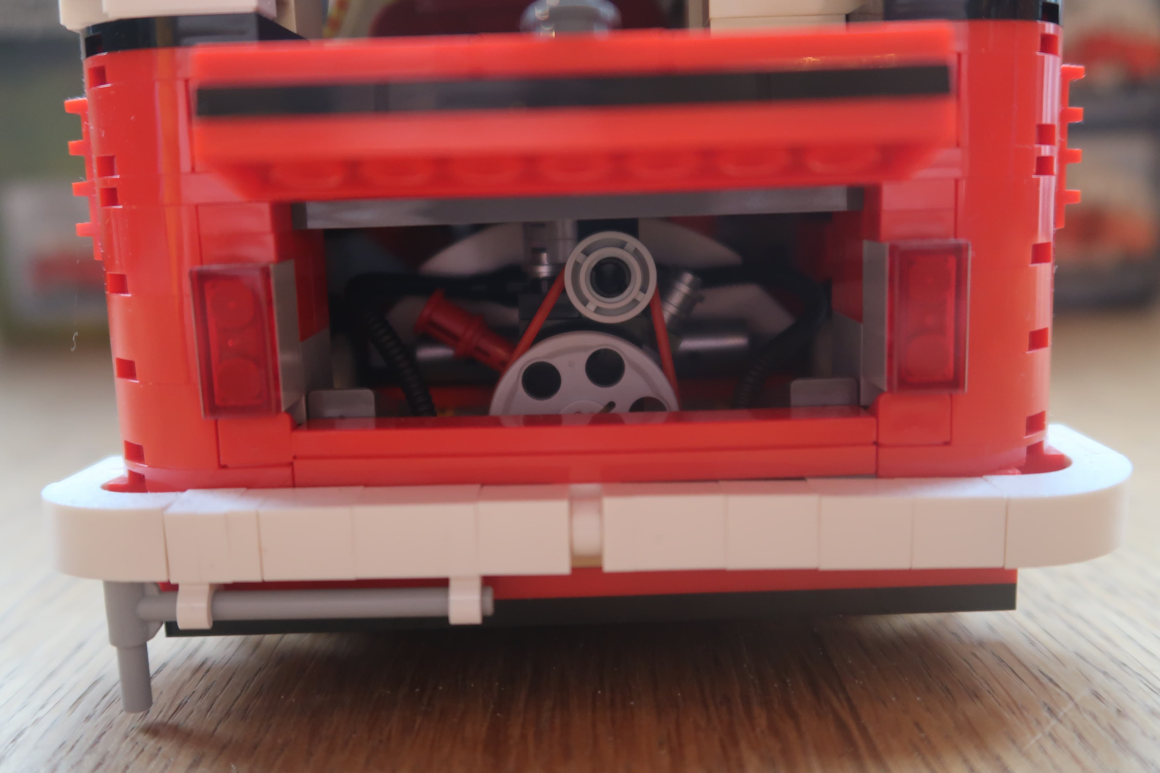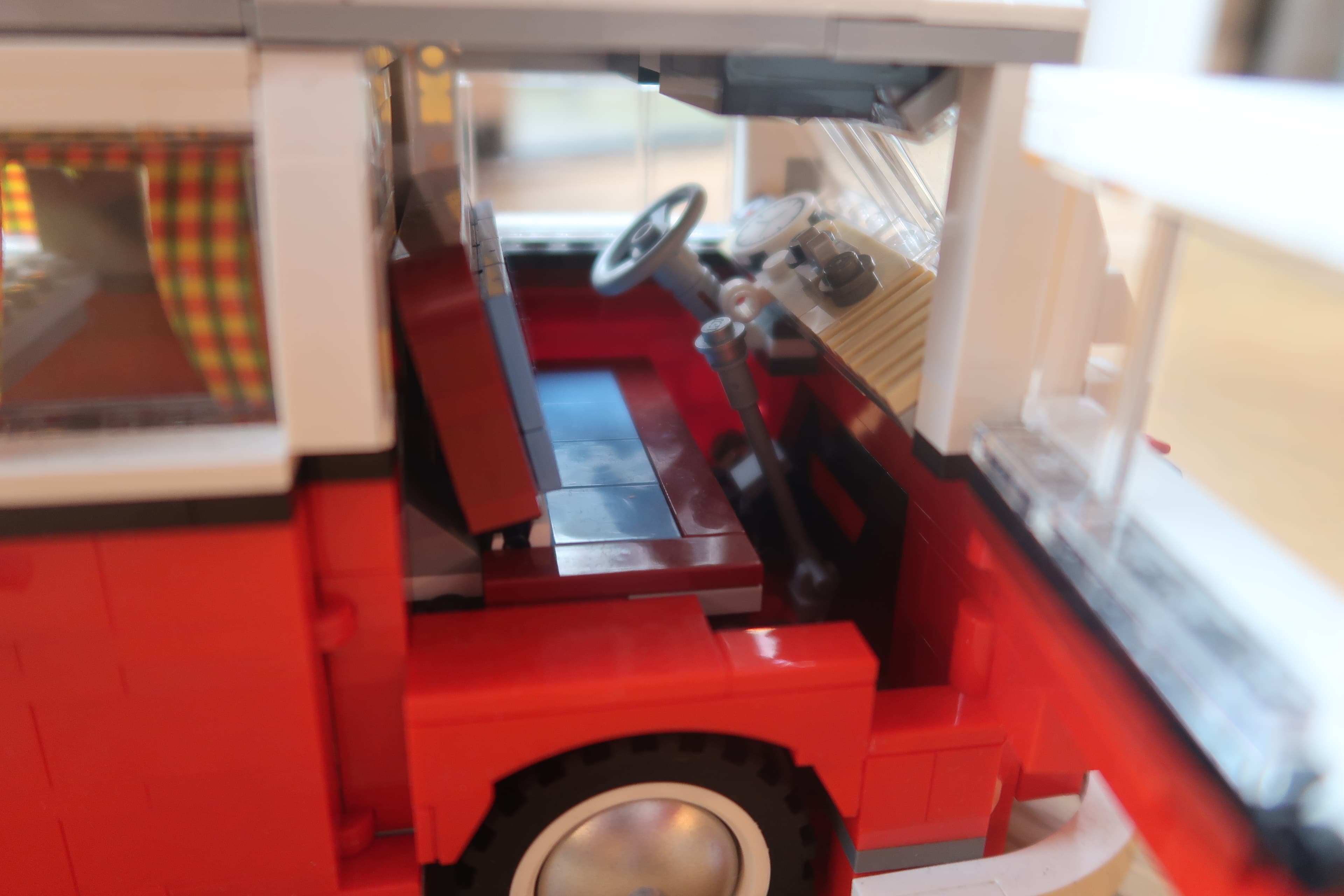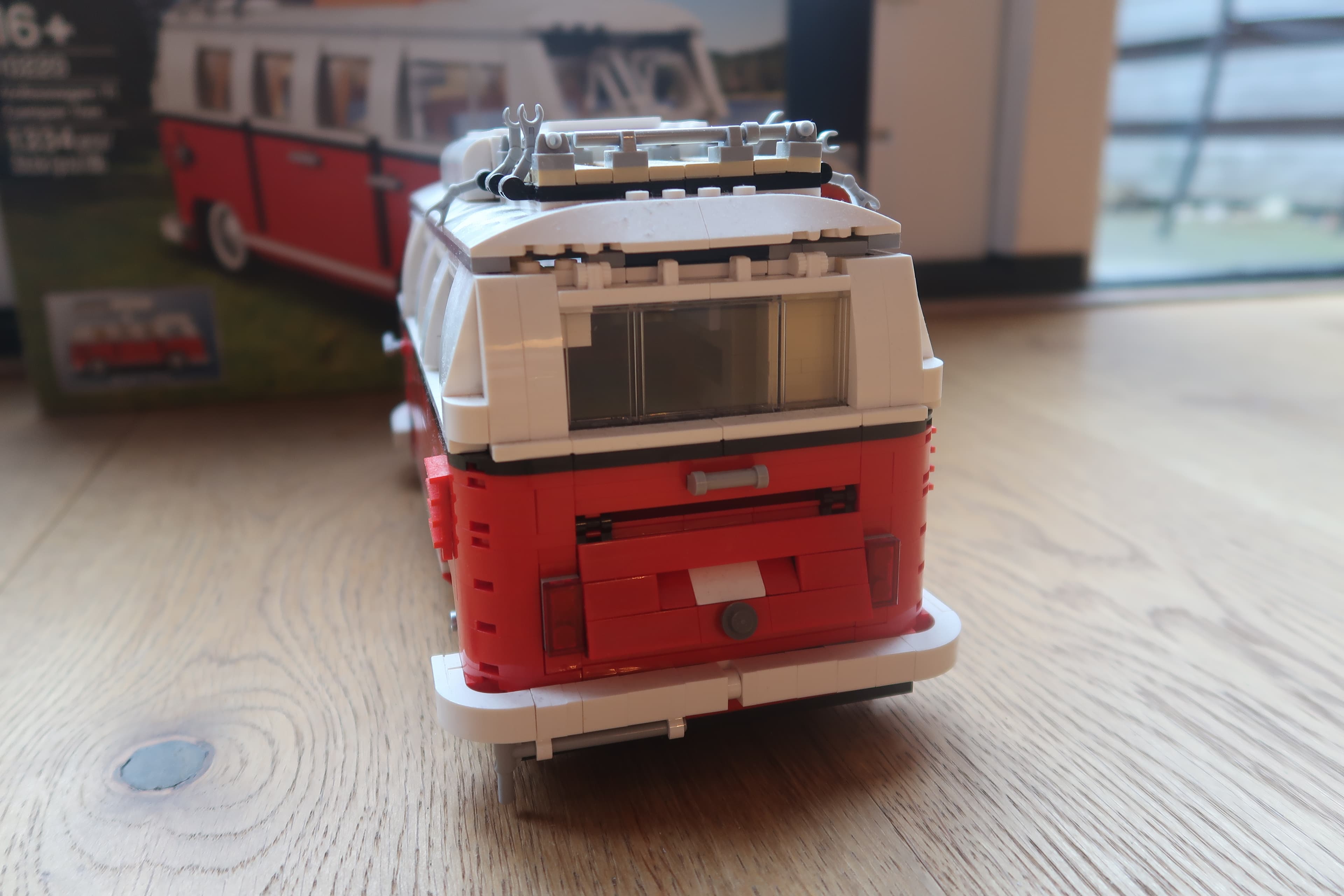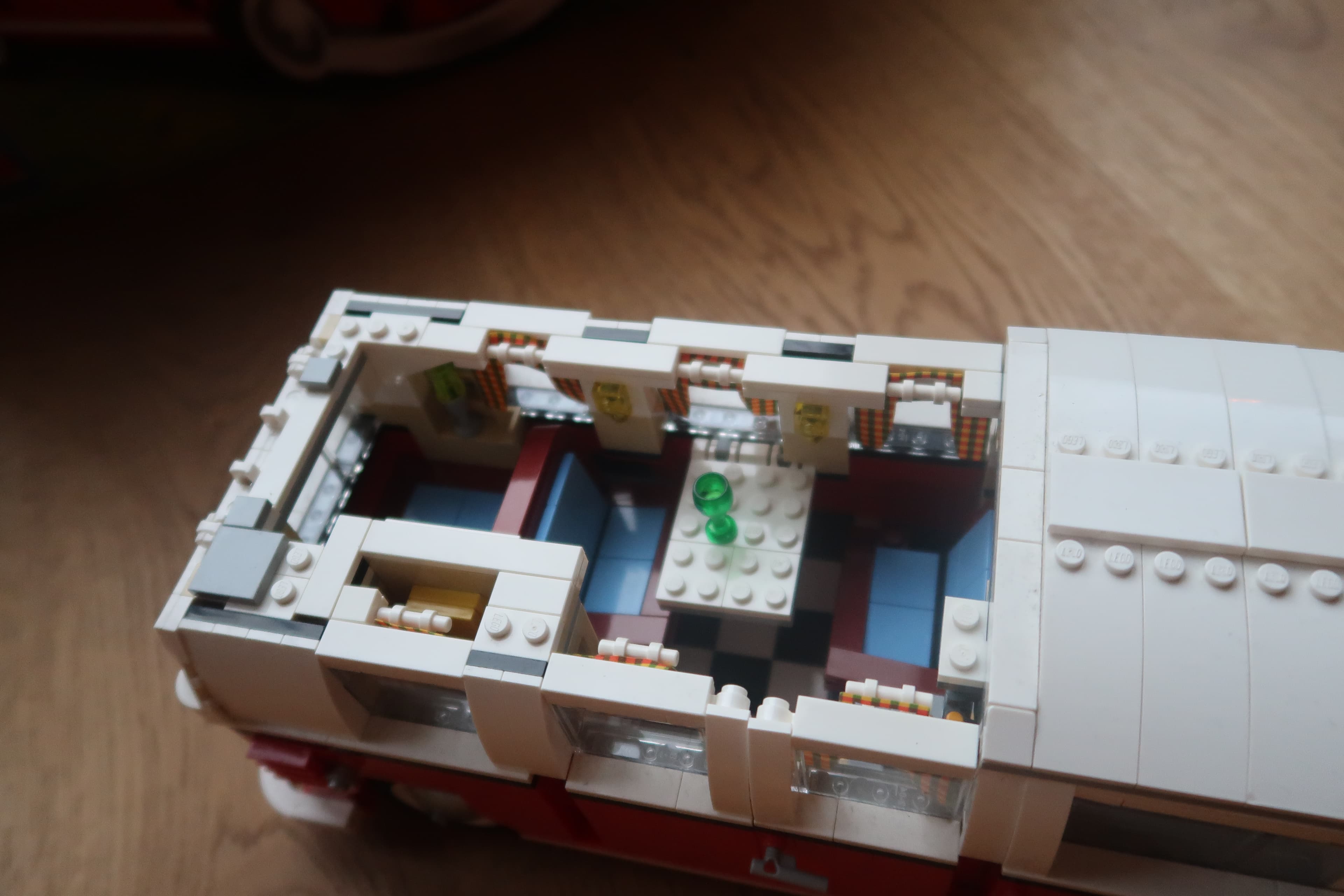 Building the camper was generally not particularly complicated. The bottom of the van was the least interesting part of the building process. The most enjoyable parts were building the engine, the front, and the interior. Building the bumpers was somewhat tricky, and they break more easily because they are mainly stacks of individual bricks mounted sideways on the camper. They fall off quickly. The instructions are, as always, easy to follow, although I sometimes found it difficult to distinguish between gray and black. The building process does not feel repetitive; the engine, interior, and the cabin of the van were the most enjoyable parts. The side and bottom were somewhat dull, and the roof was a bit disappointing, except for the fabric tent.