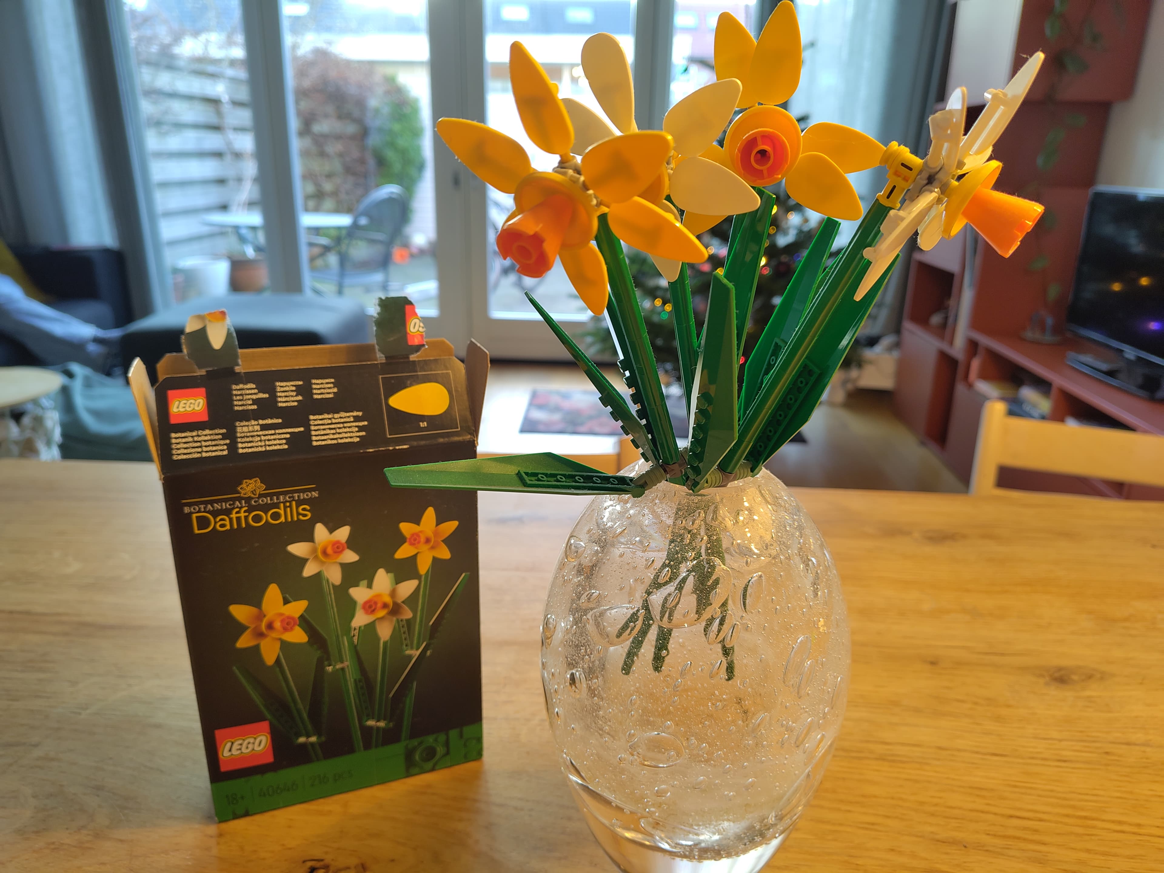 What I liked about the set is that the flowers can rotate, and the leaves can spin around their axis. The leaves can also be folded inward. The design looks pretty amusing in the vase, but it's a bit sparse if you only have these flowers. It would be more interesting with more flowers from the series.