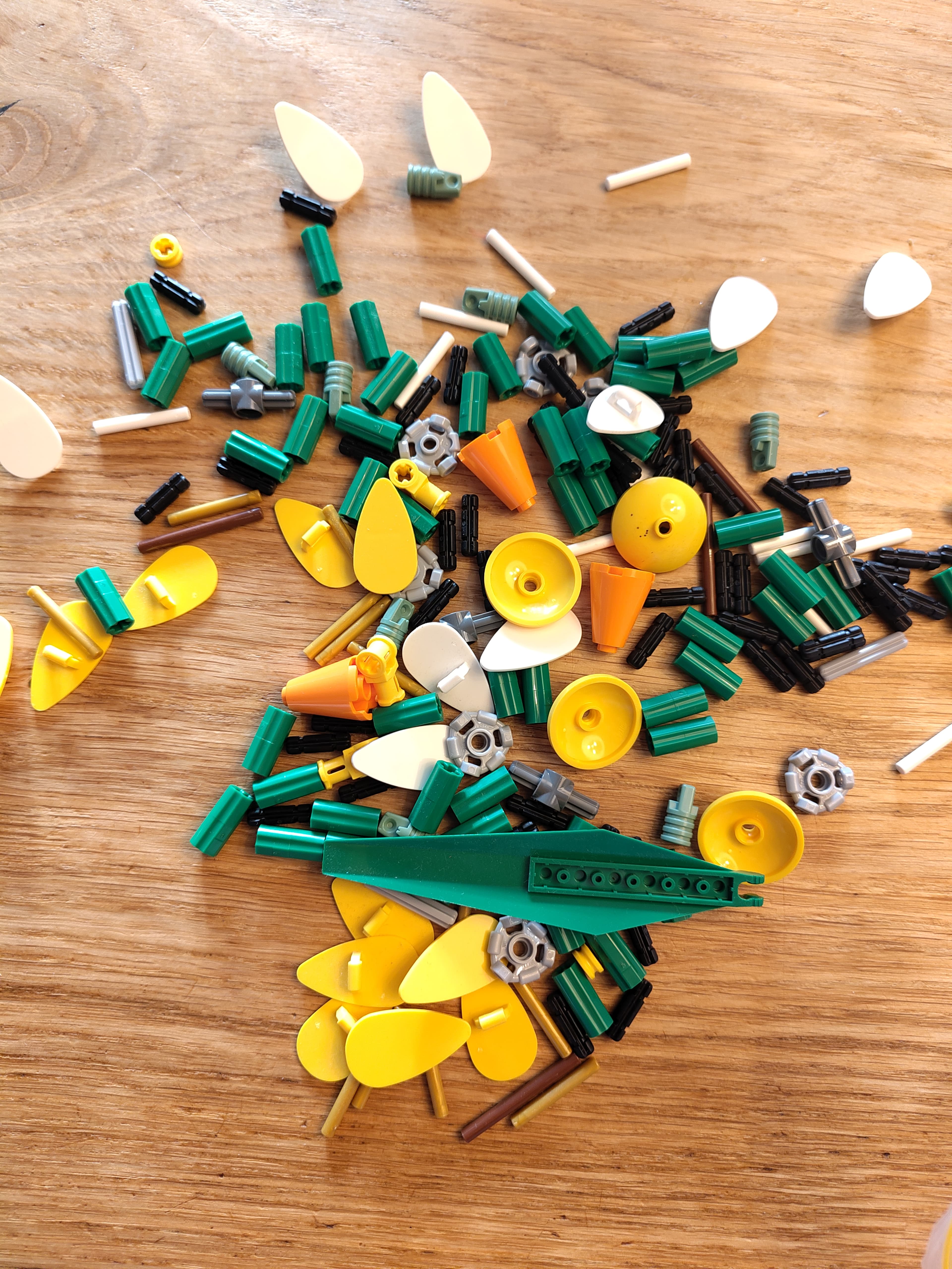 The building process was quite repetitive, especially when constructing the stems of the flowers. It was very easy and there were few surprises. I didn't quite understand why this set is marked for "18+." The instructions were simple and easy to follow. There are no particularly creative or unique building techniques included.
