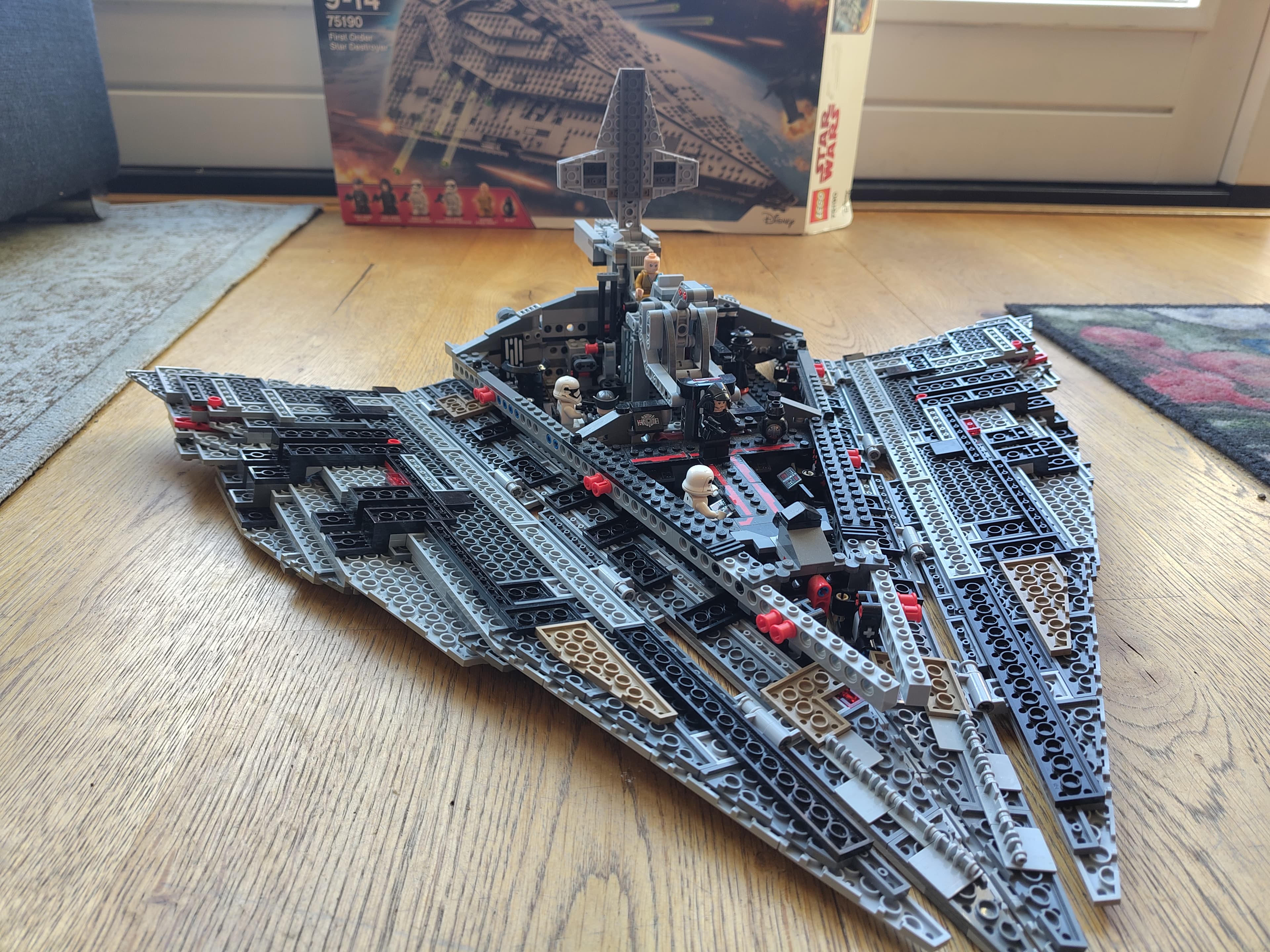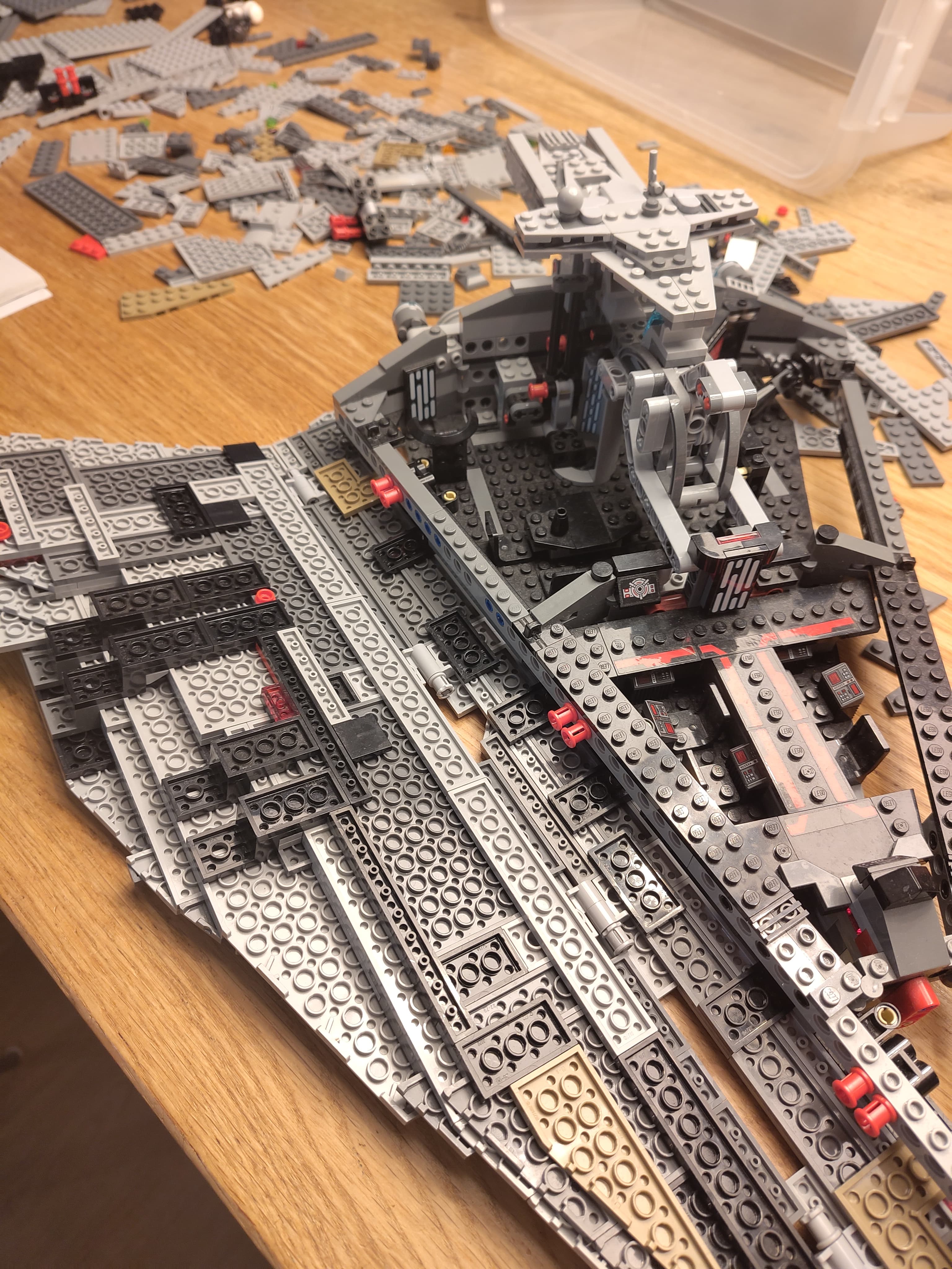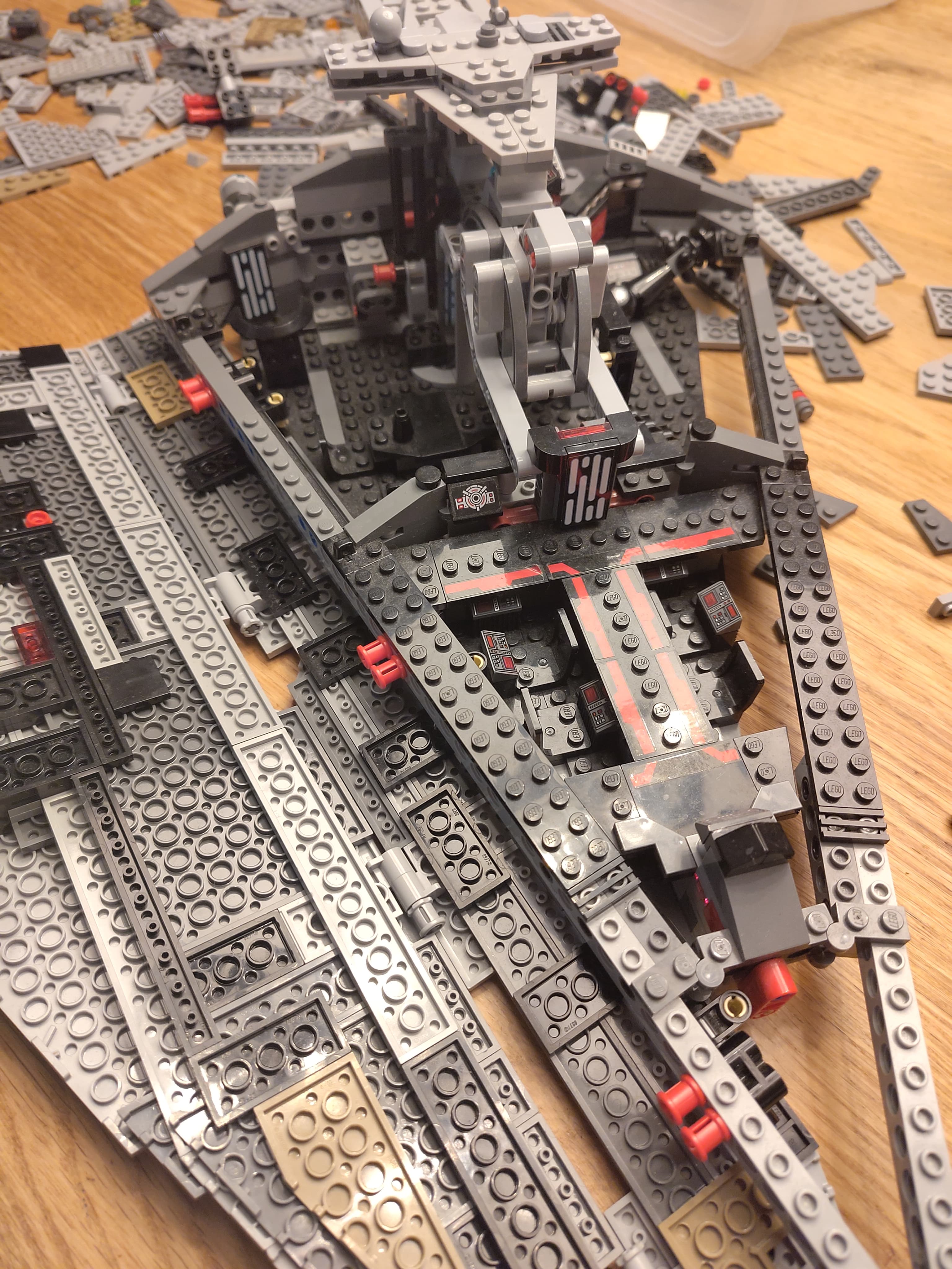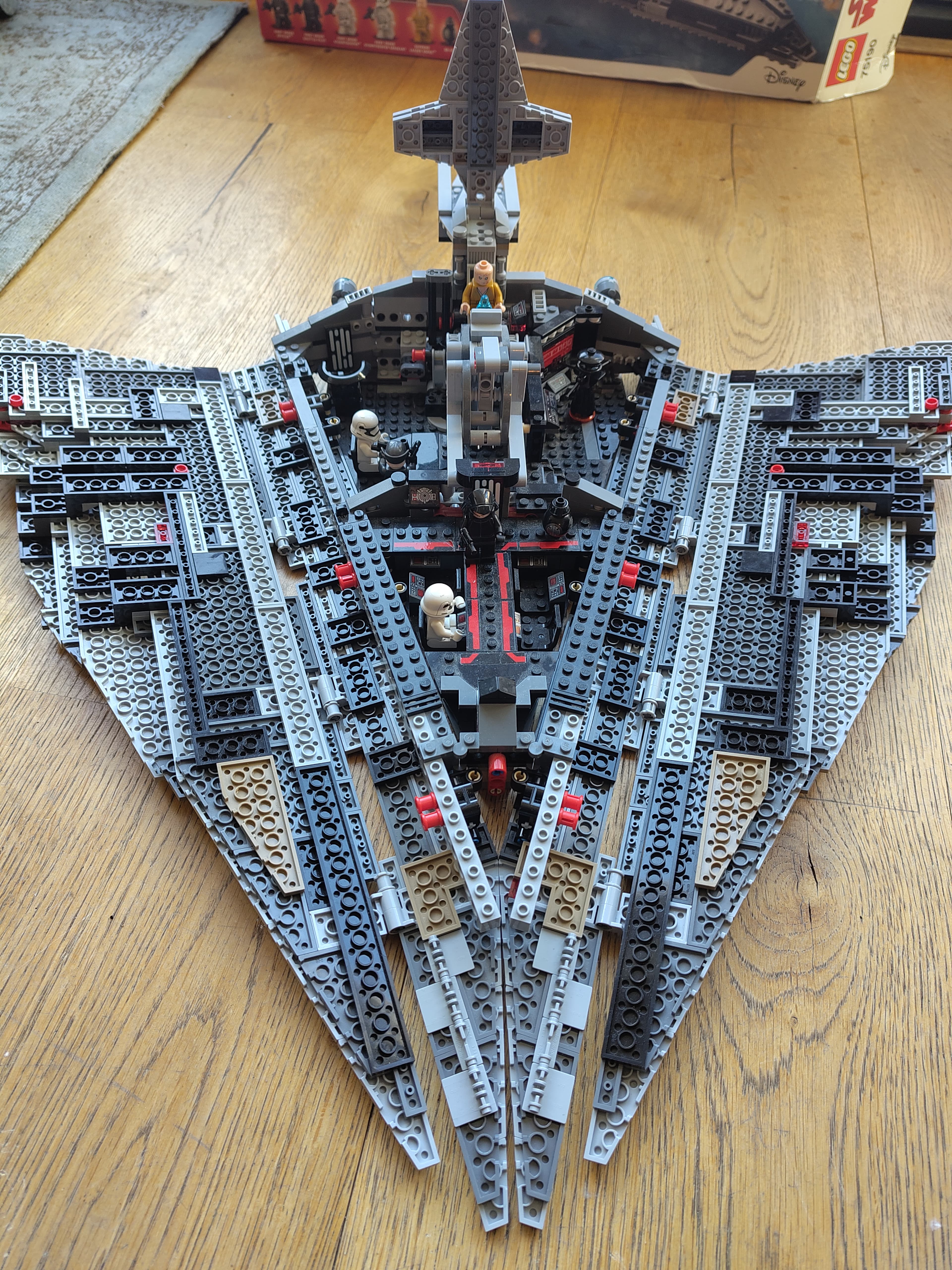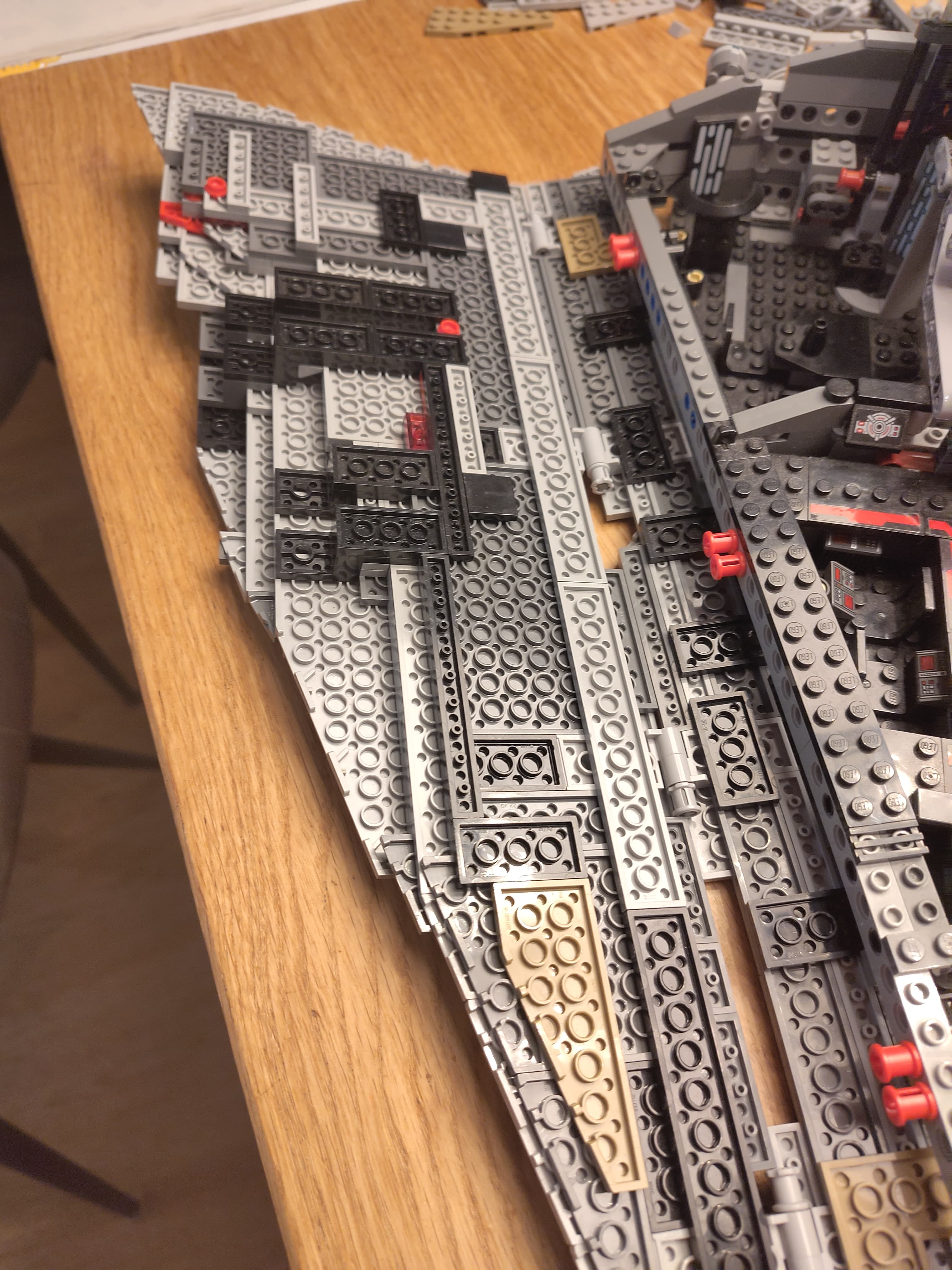 Building this ship is honestly not very exciting. Especially the "wings" (actually the walls of the ship) are extremely dull to make. They are long, monotonous surfaces, and because the wings are symmetrical, you build exactly the same thing twice. Even though they tried to add some variation in the construction steps per wing, the experience remains mediocre.